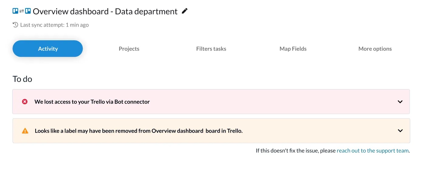 Unable to sync: Something is preventing Unito from properly interacting with the account or blocks of work you’re trying to sync.