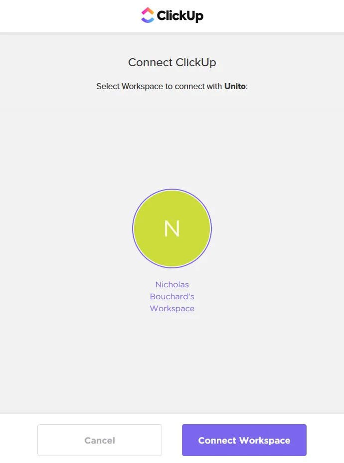 Note that this process can be a little different with some of our integrations. For some other tools, like ClickUp, you might have to log in and pick a workspace first.