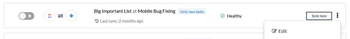 Authorize the connection. You’ll now have at least two accounts for that tool. Go back to the Dashboard. Find the flow you want to transfer, click on the three dots and click Edit.
