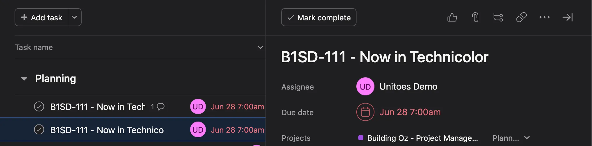 Since this task was moved between projects, Unito will consider it a new task that was added to the second project. So you may end up seeing two tasks in Asana (or your other tool of choice) with the same name. All you have to do now is merge them into one.