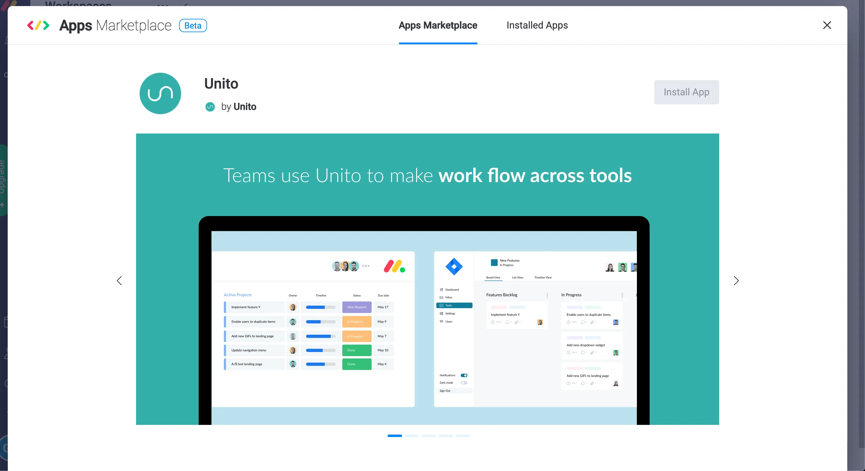 How to install Unito from the Apps Marketplace