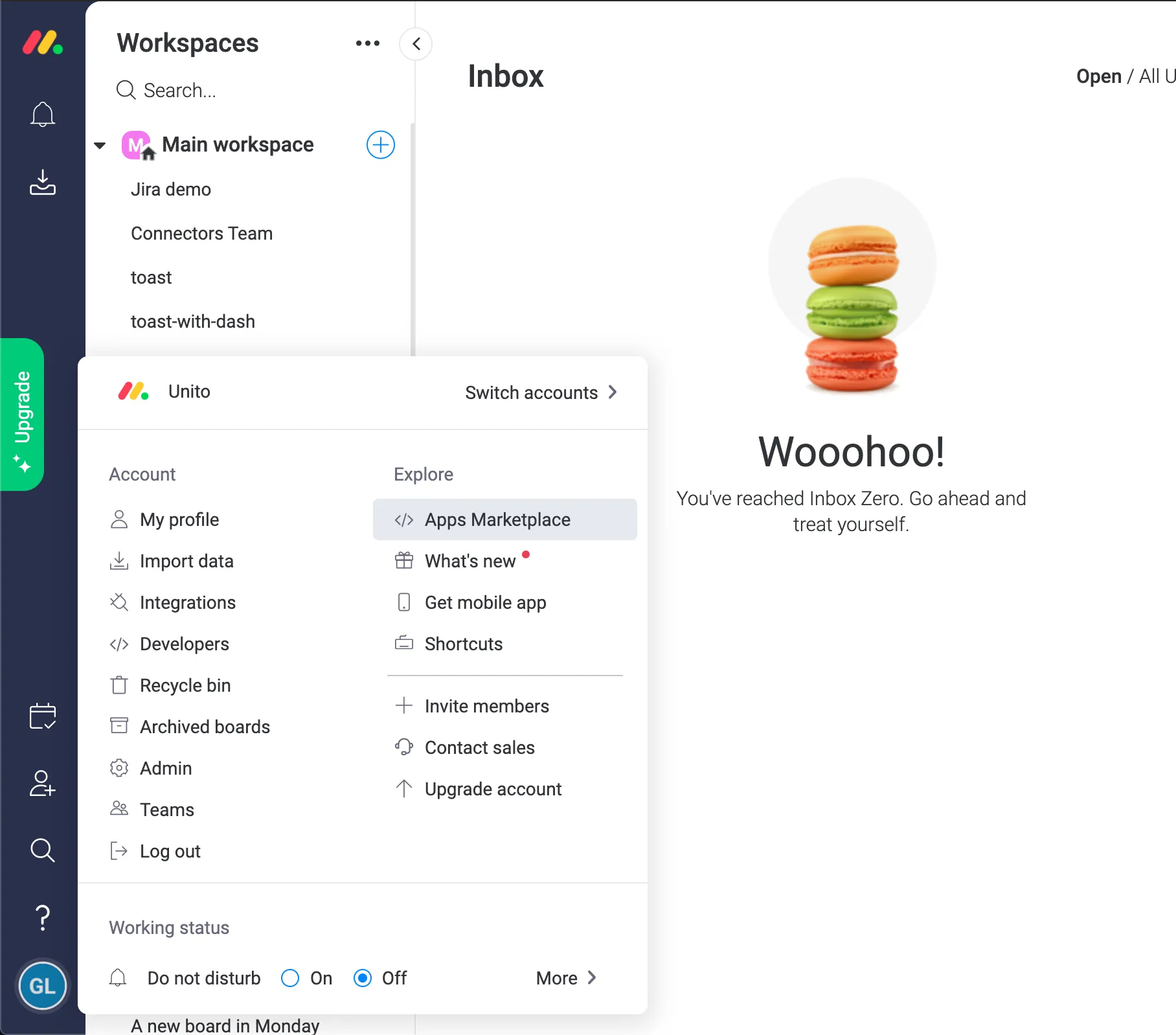 Section titled “How to install Unito from the Apps Marketplace”You only need a few clicks to install Unito in your monday.com board. Follow that link or these instructions: