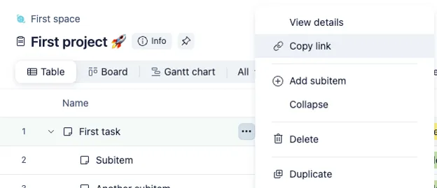 Section titled “ClickUp”You can click the three dots on the right side of a task to see the “Copy link” button: