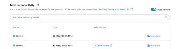 Unito’s Activity Stream lets you search for specific work items by their URL to quickly access logs or troubleshoot your flows