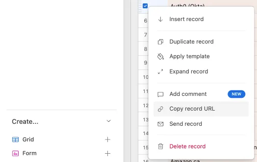 Section titled “Airtable”Select a record in Airtable and then right-click, and you can “copy record URL.”