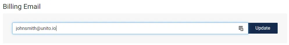 Section titled “How to change your billing email address”If you would like to receive invoices from a different email address, you can also change it on this page. Just visit the pricing section as per the steps, then scroll to the bottom of the page. In the text field: ‘Billing Email’, you will find your current billing address. To change it, just type in a different email address and press the purple ‘update’ button.