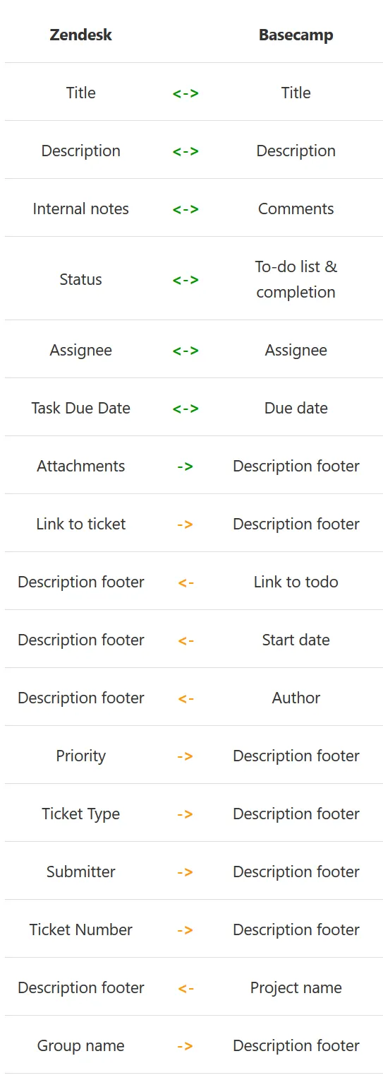 Learn the best use cases for a Zendesk-Basecamp integration, what fields are synced between the two tools, and your customization options.